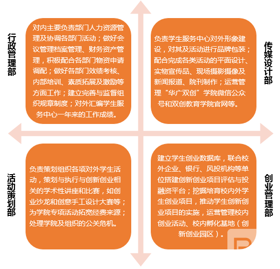 双创学生服务中心:隶属于广城理创新创业教育学院,服务于全校创新创业教育和学生创业项目的培育管理工作。