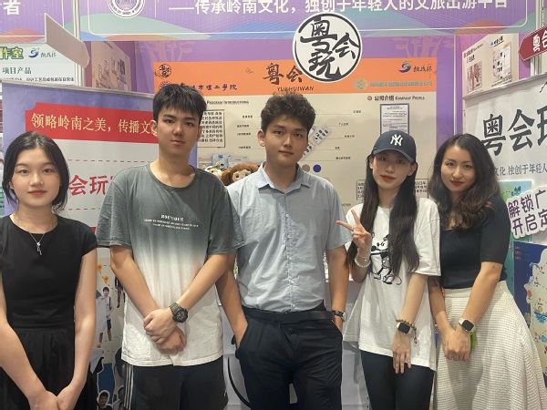 龚梦颖(右)与学生在挑战杯决赛现场(黄凤娟 提供)