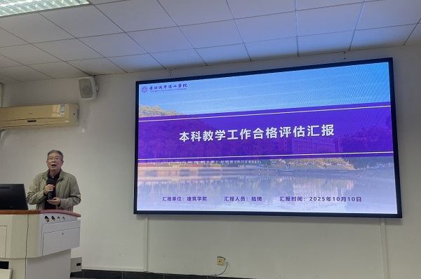 陆琦对建筑学院本科教学工作合格评估汇报进行宣讲,从基本情况、教育教学理念思路、具体举措、主要成效、存在问题及未来展望等方面进行介绍,详细讲解了学院坚持为党育人、为国育才,以高质量党建引领推动学院高质量发展,形成了“1142”应用型建筑类人才培养模式。陆琦表示,学院汇报是评估专家入校考察的重要内容,希望全体教师深入理解学院特色与成效,在评估期间,以饱满的精神状态展示学院发展建设的良好风貌。