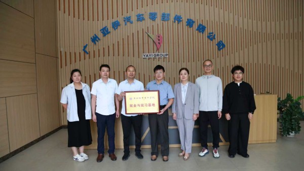 挂牌仪式前,广州亚伊汽车零部件有限公司副总经理左惠兵带领大家参观了公司的生产车间、研发中心等部门。他详细介绍了企业主营业务与核心技术:公司专注汽车内饰覆盖件的研发与生产,业务覆盖材料选型、生产工艺优化及专用设备开发,产品广泛应用于多个工业领域,已在行业内积累良好口碑。他表示,当前公司对机械设计、智能制造等专业人才需求迫切,希望通过校企合作平台,与学校共同培养适配产业需求的高素质应用型人才。